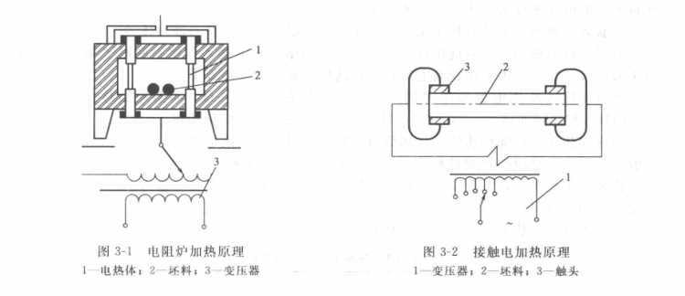 (1)電阻加熱。電阻加熱根據(jù)電阻發(fā)熱元件不同分為電阻爐加熱、接觸電加熱、鹽浴爐加熱等。